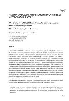 Hrast, Zala, Nestič, Ana, Zabukovec, Vlasta. "Pilotna evalvacija medpredmetnih učnih ur KIZ."