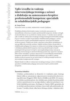 Černe, Tanja. "Vpliv izvedbe in vodenja intervencijskega treninga z učenci z disleksijo na samozaznavo krepitve profesionalnih kompetenc specialnih in rehabilitacijskih pedagogov."