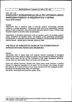 Bintchende, Inacio. "Kakovost gozdarskega dela pri ustanavljanju narodnih parkov in rezervatov v Afriki."