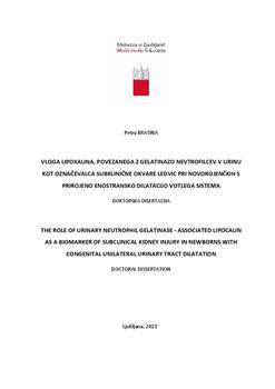Bratina, Petra, Kersnik-Levart, Tanja, Paro Panjan, Darja (2021). Vloga lipokalina, povezanega z gelatinazo nevtrofilcev v urinu kot označevalca subklinične okvare ledvic pri novorojenčkih s prirojeno enostransko dilatacijo votlega sistema. URN:NBN:SI:DOC-8M5D576C from http://www.dlib.si