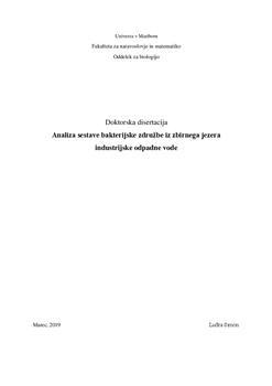 Objekt raziskovanja te doktorske disertacije je odpadna industrijska voda iz umetnega zbirnega jezera, ki se nahaja v urbanem okolju. Prebivalstvo v tem okolju zlasti v poletnih mesecih moti pogosto penjenje in motnost vode v jezeru. Z namenom preiskave mikrobnih združb tega jezera smo poleti 2013 odvzeli vzorce vod in sedimentov iz petih, geografsko različnih vzorčnih mest jezera. Vzorce smo ob odvzemu preiskali tudi glede izbrane fizikalno-kemijske lastnosti. Na hranilnem agarju smo iz vzorcev osamili 71 morfološko različnih izolatov. Vse izolate smo opisali s fenotipskimi in molekularno-biološkimi pristopi. S preiskavo nukleotidnih zaporedij genov za 16S rRNA smo identificirali 20 različnih bakterijskih rodov iz 16 družin. Sekvenca gena za 16S rRNA enega izmed izolatov se je z najbolj podobno sekvenco referenčnih sevov ujemala v le 96,2 %, zato smo ta izolat v nadaljevanju natančno preiskali s fenotipskimi pristopi in analizo njegovega genomskega zaporedja. Na osnovi teh rezultatov smo izolat opisali in objavili kot novo bakterijsko vrsto Paenibacillus aquistagni 11T. Preiskovanje odpornosti glede na klinično pomembne antibiotike pri izolatih iz družine Enterobacteriaceae in iz rodov Acinetobacter ter Pseudomonas je odkrilo odpornost na ampicilin, pri 14,3 % sevov iz družine Enterobacteriaceae pa tudi na kloramfenikol. Izolati, identificirani kot Acinetobacter sp., Pseudomonas otitidis in Bacillus sp., ki smo jih izolirali iz vzorčnega mesta, kjer je bilo penjenje najbolj obilno, so tudi v pogojih laboratorijskega namnoževanja tvorili stabilno peno na površini kompleksnega gojišča. Po analizi fizikalno-kemijskih lastnosti vode smo ugotovili najvišjo koncentracijo kovin v vzorčnem mestu 5, zato smo izolate tega vzorčnega mesta preiskali glede odpornost na železo in mangan. Za vse izolate smo ugotovili rast ob prisotnosti 300 mg/L Fe v kompleksnem gojišču, za 73 % ob prisotnosti 900 mg/L Fe, en izolat je toleriral 1500 mg/L Fe. Odpornost proti 1500 mg/L Mn smo potrdili pri 37 % preiskanih sevih, pri koncentraciji 300 mg/L Mn pa je rastlo kar 91 % izolatov. S tehnologijo Ion Torrent smo na osnovi preiskovanja sekvenc sedmih variabilnih regij genov za 16S rRNA tudi brez predhodne osamitve izolatov preiskali sestavo mikrobne združbe iz istih petih vzorčnih mest jezera odpadne vode kot smo pridobili izolate. V vzorcih Voda 1, Voda 3 in Voda 4 so prevladovale operacijske taksonomske enote iz družine Prochlorococcacea, v vzorcu Voda 2 iz družine Sphingomonadaceae, v vzorcu voda 5 pa iz družine Gallionellacea. V vzorcu Sediment 1 so prevladovale enote OTE iz družine Rhodobacteraceae, v vzorcu Sediment 2 iz Sphingomonadaceae, v vzorcu Sediment 3 iz Desulfobacteraceae, v vzorcu Sediment 4 iz Pseudomonadaceae in v vzorcu Sediment 5 iz družine Nostocaceae. Primerjava med bakterijskimi družinami, identificiranimi po osamitvi izolatov, in bakterijskimi družinami identificiranimi neposredno, je odkrila najboljše ujemanje med rezultati za vzorec Voda 2 (57,2 %), nekoliko slabše za vzorec Voda 1 (21,8 %), Voda 3 (20,0 %) in Voda 4 (14,5 %), najslabše pa za vzorec Voda 5 (1,2 %). Pri sedimentih je bilo najboljše ujemanje med bakterijskimi družinami, identificiranimi z obema metodološkima pristopoma, v vzorcu Sediment 4 (74,0 %) in Sediment 2 (57,4 %), slabše pri Sediment 3 (10,2 %) in Sediment 1 (14,0 %), najslabše ujemanje pa je bilo ponovno v sedimentu iz vzorčnega mesta 5 (2,4 %). Z analizo glavnih komponent PCA smo ugotavljali vpliv fizikalno-kemijskih lastnosti na prisotnost posameznih bakterijskih družin. V vzorcih vod smo ugotovili povezavo med pH-vrednostjo, vsebnostjo Mg, Na, Cu, Fe, Mn, Zn in skupino bakterijskih družin Gallionellaceae, Burkholderiaceae, Eubacteriaceae, Methylophilaceae in Ferrovaceae. V vzorcih sedimentov pa je bila prevladujoča povezava med vsebnostjo As, Cd, Co, Cu, Fe, Mn, Ni, Zn in skupino bakterijskih družin Nostocaceae, Ferrovaceae, Gallionellaceae, Acetobacteraceae in Acidobacteriaceae.