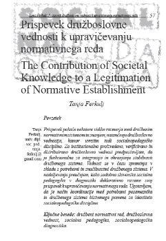 Ferkulj, Tanja. "Prispevek družboslovne vednosti k upravičevanju normativnega reda."