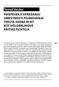Verdev, Tomaž. "Prispevek k vprašanju umestnosti pojmovanja teksta Sodba in bit kot Hölderlinove kritike Fichteja."