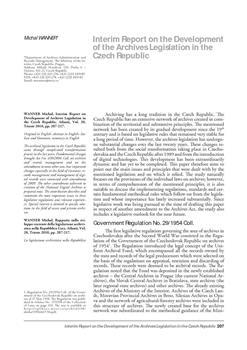 Wanner, Michal. "Interim report on the development of the archives legislation in the Czech Republic."