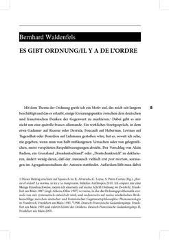 Waldenfels, Bernhard (2013). Es gibt Ordnung/Il y a de l'ordre.