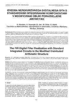 Korošec, Karl, Vesenjak, Anton, Jarc, Bojan, Solar, Mitja, Babič, Rudolf. "Izvedba nerekurzivnega digitalnega sita s standardnimi integriranimi komponentami v modificirani obliki porazdeljene aritmetike."