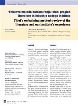 Kocbek, Lidija, Rakuša, Mateja (2017). Thiel's embalming method.