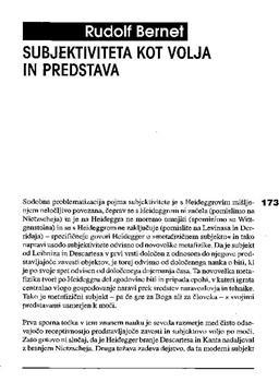 Bernet, Rudolf, Košar, Aleš (1997). Subjektiviteta kot volja in predstava.