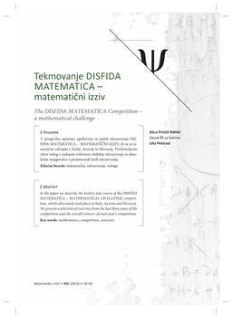 Prinčič Röhler, Alica, Peterzol, Lilia. "Tekmovanje DISFIDA MATEMATICA - matematični izziv."