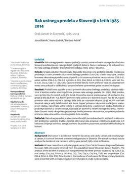 Blatnik, Jona, Zadnik, Vesna, Artnik, Barbara. "Rak ustnega predela v Sloveniji v letih 1985- 2014."