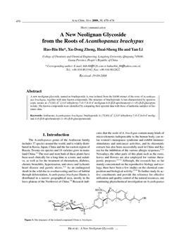 Hu, Hao-Bin, Zheng, Xu-Dong, Hu, Huai-Sheng, Li, Yan. "A new neolignan glycoside from the roots of Acanthopanax brachypus."