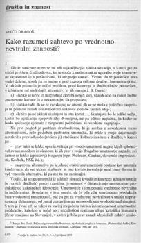 Dragoš, Srečo. "Kako razumeti zahtevo po vrednotno nevtralni znanosti?."