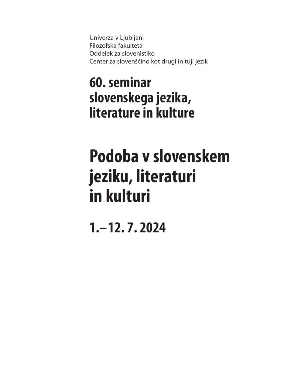 60. seminar slovenskega jezika, literature in kulture.