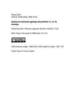 Šekli, Matej (2022). Jezikovne lastnosti zgodnje slovenščine 11. in 12. stoletja.