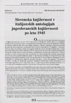 Jan, Zoltan (1999). Slovenska književnost v italijanskih antologijah jugoslovanskih književnosti po letu 1945.