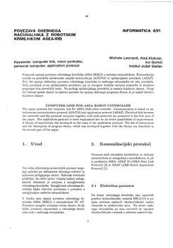 Leonardi, Michele, Klofutar, Aleš, Gorkič, Ivo. "Povezava osebnega računalnika z robotskim krmilnikom ASEA-IRB."