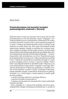 Dedić, Nikola, Bratina, Vasja. "Poststrukturalizem kot teoretični kontekst postavantgardne umetnosti v Sloveniji."