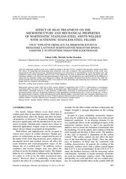 Calik, Adnan, Karakaş, Mustafa Serdar. "Effect of heat treatment on the microstructure and mechanical properties of martensitic stainless-steel joints welded with austenitic stainless-steel fillers."