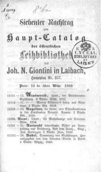 Leihbibliothek des Joh. N. Giontini Buch- Kunst, Musikalien- Landkarten-, Papier- und Schreibmaterialen-Händler in Laibach ... : Haupt-Katalog über die zum öffentlichen Ausleihen bei der Eröffnung 1846 vorhandenen Werke. Eingetheilt in 25 Fach-Wissenschaften