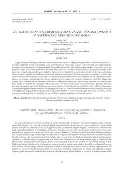 Jutraž, Anja, Zupančič-Strojan, Tadeja. "Virtualni urbani laboratorij (VuLab) za vključevanje javnosti v načrtovanje urbanega prostora."
