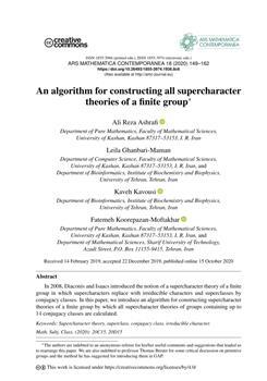 Ashrafi, Ali Reza, Ghanbari-Maman, Leila, Kavousi, Kaveh, Koorepazan-Moftakhar, Fatemeh. "An algorithm for constructing all supercharacter theories of a finite group."