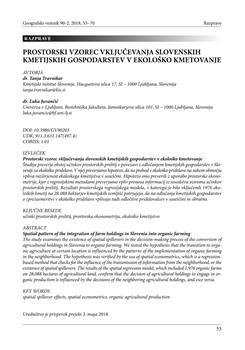 Travnikar, Tanja, Juvančič, Luka. "Prostorski vzorec vključevanja slovenskih kmetijskih gospodarstev v ekološko kmetovanje."