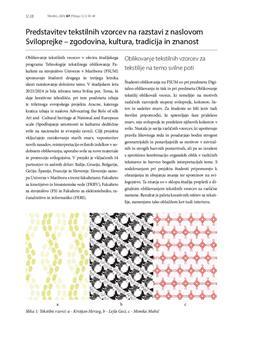 Šterman, Sonja, Jerič, Petra. "Predstavitev tekstilnih vzorcev na razstavi z naslovom Sviloprejke – zgodovina, kultura, tradicija in znanost."