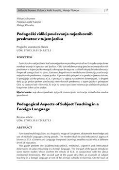 Brumen, Mihaela, Kolbl Ivanjšič, Polonca, Pšunder, Mateja. "Pedagoški vidiki poučevanja nejezikovnih predmetov v tujem jeziku."