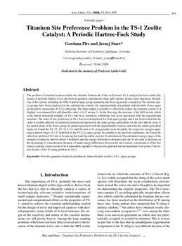 Pirc, Gordana, Stare, Jernej. "Titanium site preference problem in the TS-1 zeolite catalyst."