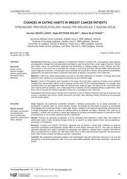 Grašič Lunar, Karmen, Rotovnik-Kozjek, Nada, Kovač-Blaž, Milena. "Changes in eating habits in breast cancer patients."