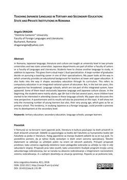 Dragan, Angela. "Teaching Japanese Language in tertiary and secondary education."