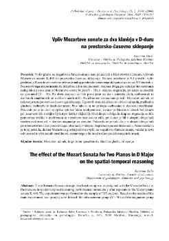 Habe, Katarina (2006). Vpliv Mozartove sonate za dva klavirja v D-duru na prostorsko-časovno sklepanje.