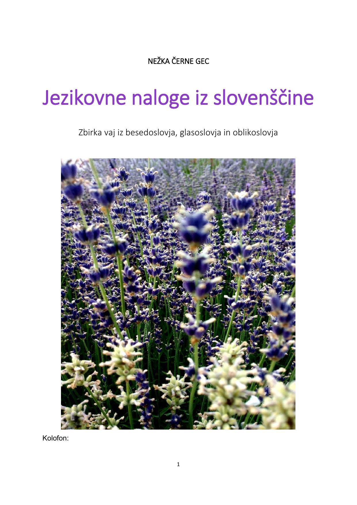 Jezikovne naloge iz slovenščine : zbirka vaj iz besedoslovja, glasoslovja in oblikoslovja