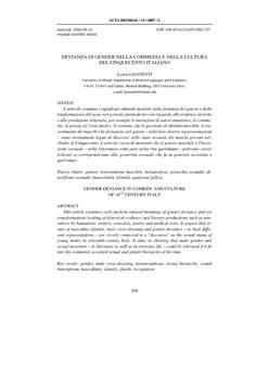 Giannetti, Laura. "Devianza di gender nella commedia e nella cultura del cinquecento italiano."