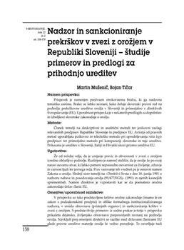Muženič, Martin, Tičar, Bojan (2020). Nadzor in sankcioniranje prekrškov v zvezi z orožjem v Republiki Sloveniji - študije primerov in predlogi za prihodnjo ureditev.