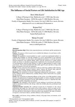 Kaučič, Boris Miha, Filej, Bojana, Ovsenik, Marija. "The influence of social factors on life satisfaction in old age."