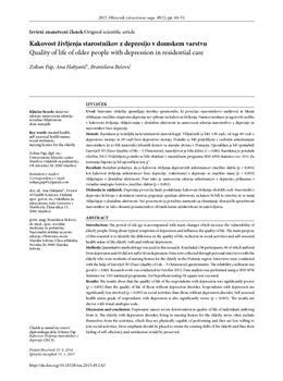 Pap, Zoltan, Habjanič, Ana, Belović, Branislava. "Kakovost življenja starostnikov z depresijo v domskem varstvu."
