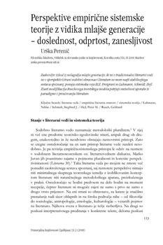 Perenič, Urška. "Perspektive empirične sistemske teorije z vidika mlajše generacije."