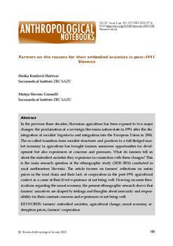 Knežević Hočevar, Duška, Slovenc Grasselli, Mateja. "Farmers on the reasons for their embodied anxieties in post-1991 Slovenia."