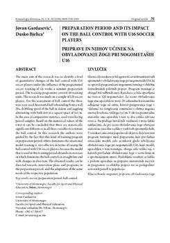 Gardasevic, Jovan, Bjelica, Duško. "Preparation period and its impact on the ball control with U16 soccer players."