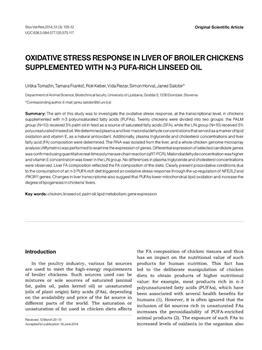 Tomažin, Urška, Korošec, Tamara, Keber, Rok, Rezar, Vida, Horvat, Simon, Salobir, Janez. "Oxidative stress response in liver of broiler chickens supplemented with N-3 PUFA-rich linseed oil."