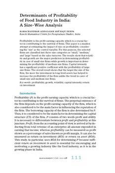 Azhakar, Ramachandran, Deepa, Raju (2012). Determinants of profitability of food industry in India.