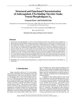 Faure, Grazyna, Saul, Friderick A. (2011). Structural and functional characterization of anticoagulant, FXa-binding Viperidae snake venom phospholipases A2.