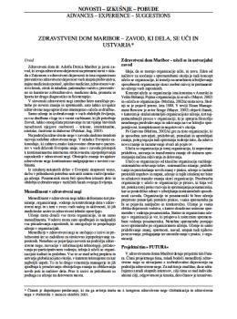 Kaučič, Boris Miha, Bačun, Mojca. "Zdravstveni dom Maribor - zavod, ki dela, se uči in ustvarja."