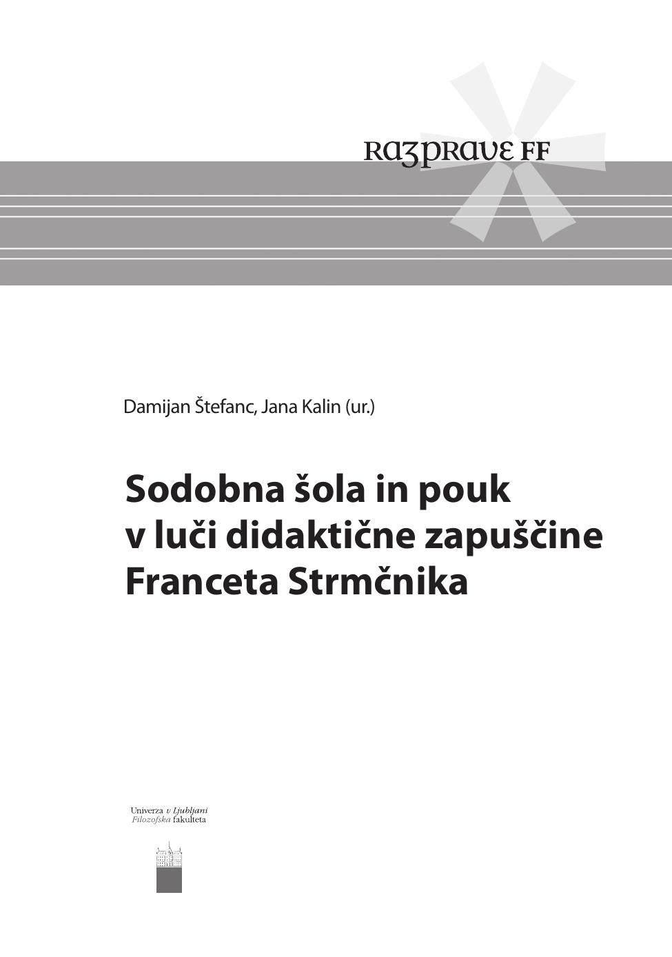 Kalin, Jana, Štefanc, Damijan, Zavrl, Andrej (2023). Sodobna šola in pouk v luči didaktične zapuščine Franceta Strmčnika. URN:NBN:SI:DOC-NYUXIF6T from http://www.dlib.si