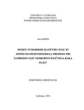 Koren, Ana, Čufer, Tanja, Korošec, Peter (2016). Pomen tumorskih matičnih celic in epitelno-mezenhimskega prehoda pri napredovanju nedrobnoceličnega raka pljuč. URN:NBN:SI:DOC-OB0H14RN from http://www.dlib.si
