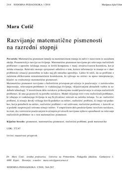 Cotič, Mara. "Razvijanje matematične pismenosti na razredni stopnji."