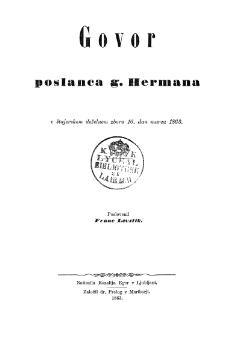 Hermann, Mihael, Levstik, Fran (1863). Govor poslanca g. Hermana v štajerskem deželnem zboru 16. dan marca 1863. URN:NBN:SI:DOC-P7U0Y1ZC from http://www.dlib.si
