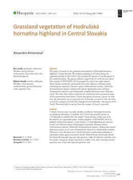 Klimantová, Alexandra. "Grassland vegetation of Hodrušská hornatina highland in Central Slovakia."