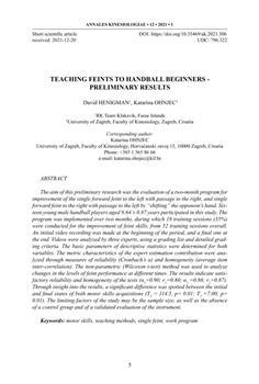 Henigman, David, Ohnjec, Katarina. "Teaching feints to handball beginners, preliminary results."